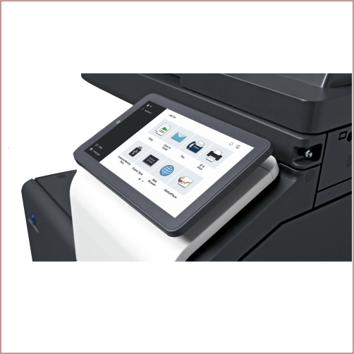 Die Konica Minolta bizhub C300i besticht durch das 10-Zoll-Touchscreen. Es kann ein Neigungswinkel von