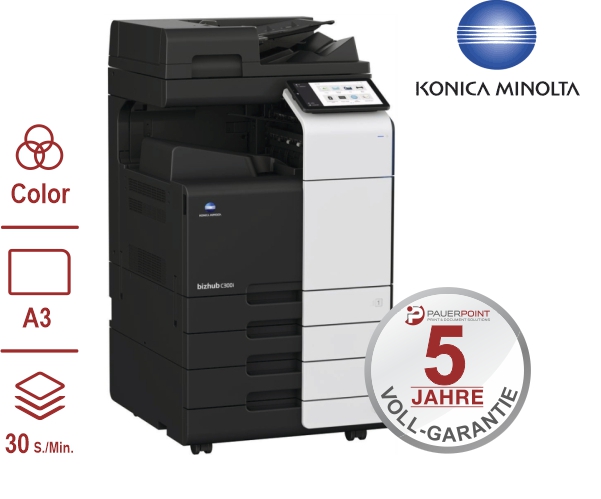 Alle Konica Minolta Serien werden standardmäßig mit 5 Jahren PauerPoint Voll-Garantie angeboten. Wir kümmern uns über die ganze